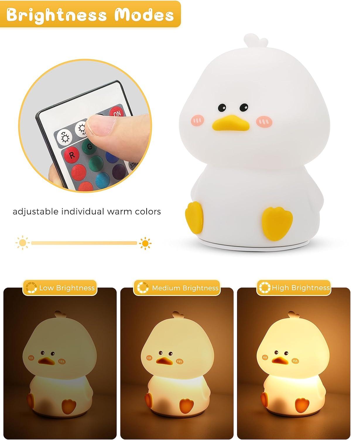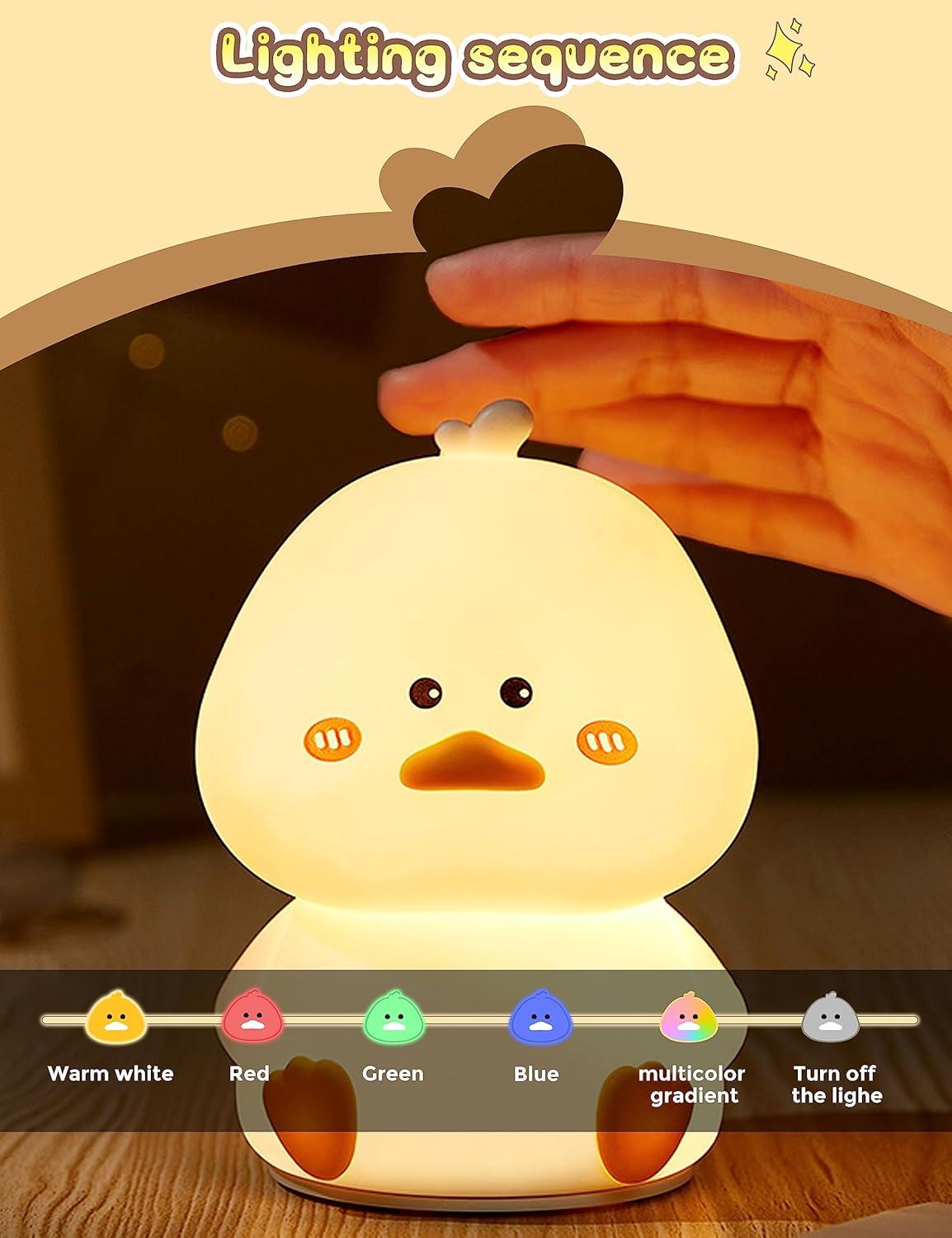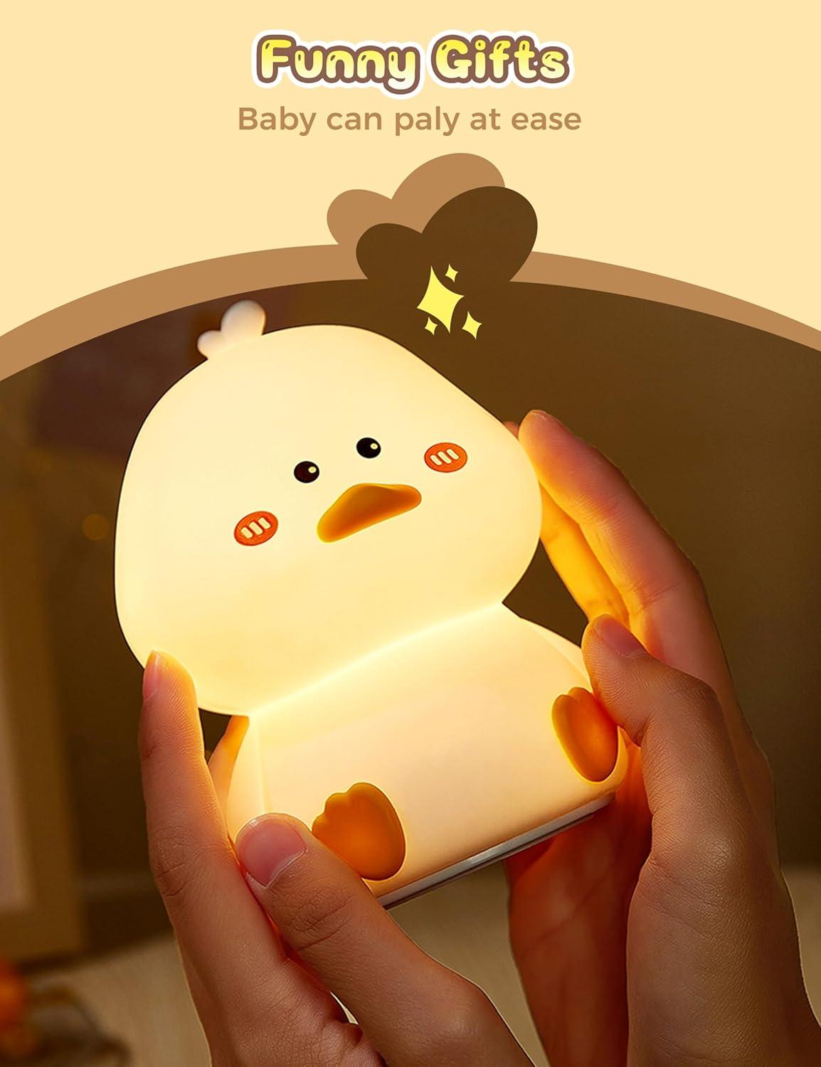 🦆Certified Safety: The night light for kids is made of silicone, which is SUPER SOFT & dually certified for safety. Our silicone night lamp boasts a soft, washable design devoid of sharp edges. Crafted to be held and played with by children and newborns, it prioritizes their safety while enhancing the decorative aspects of the room.