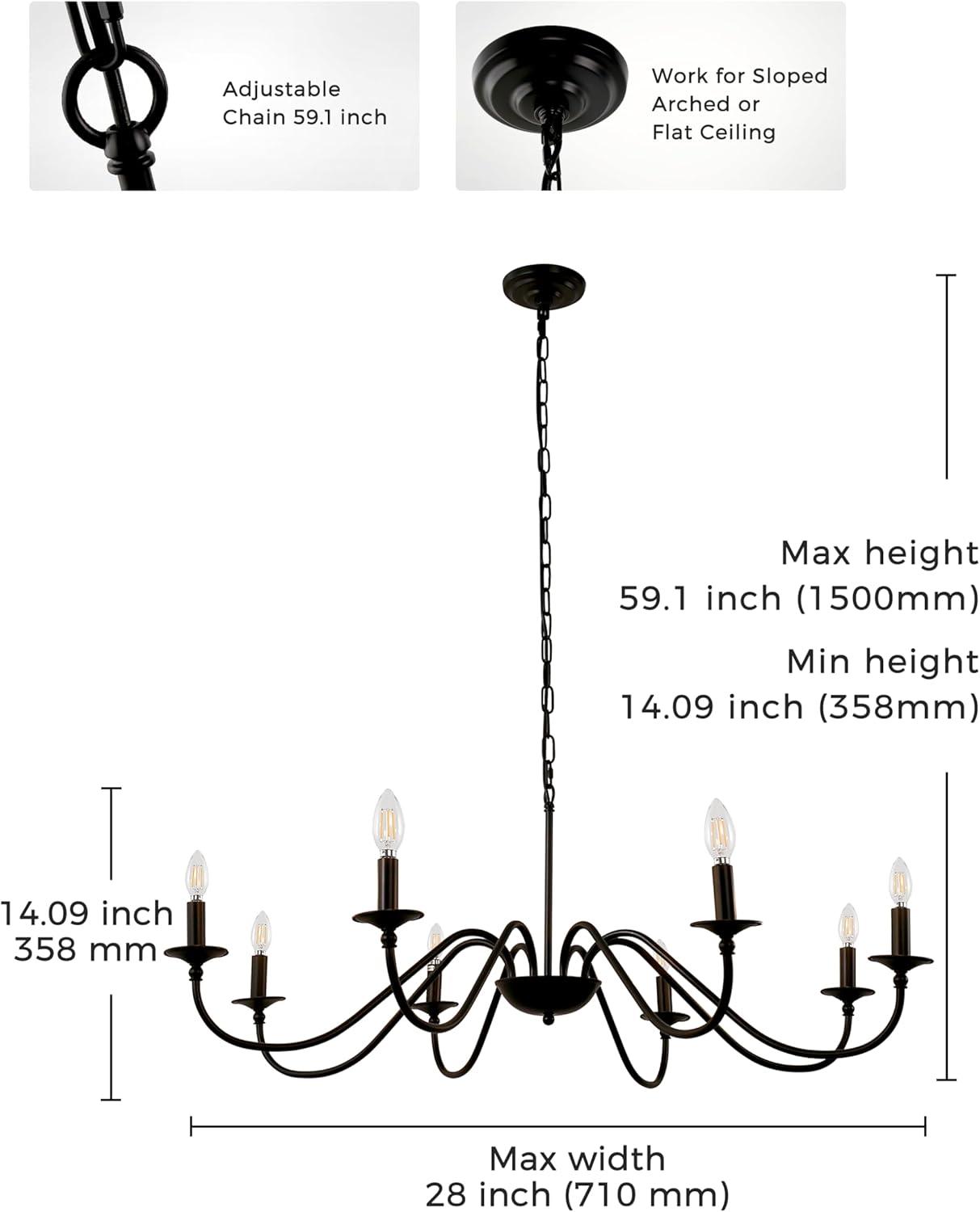 L LOHAS LED 6-Light Black Farmhouse Chandelier for Dining Room, 28" Vintage Dining Room Light Fixtures Over Table, Adjustable Hanging Industrial Candle Chandelier for Bedroom Living Room Entryway E12(Black)