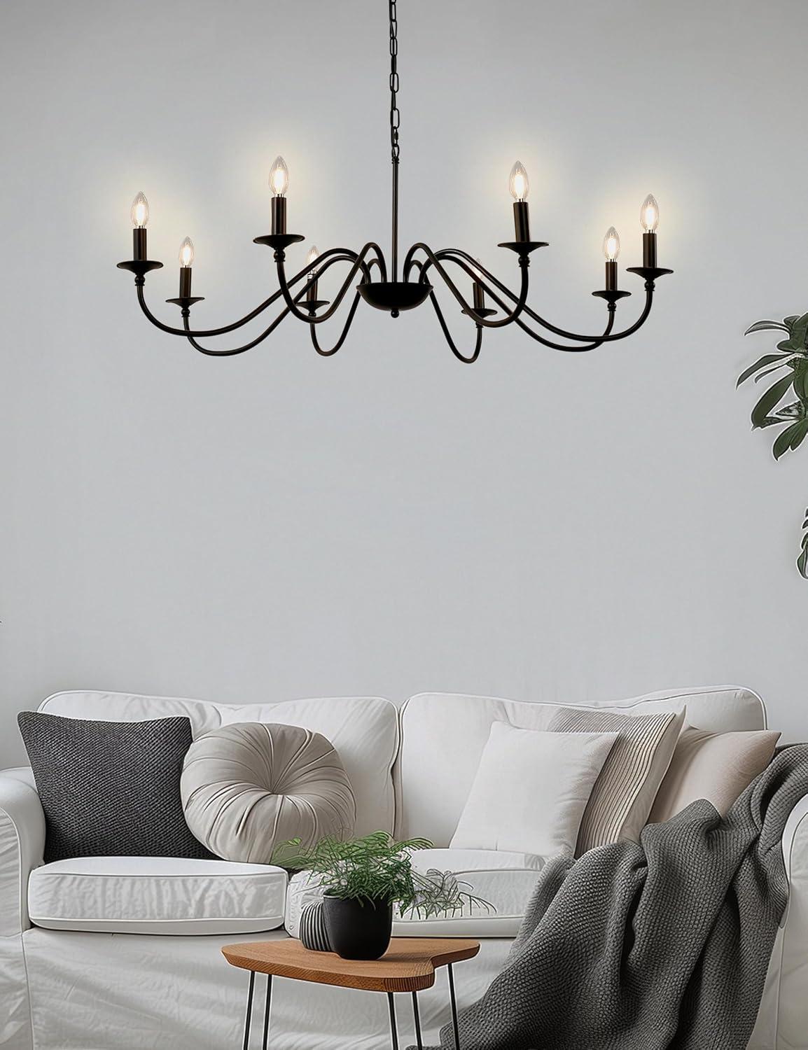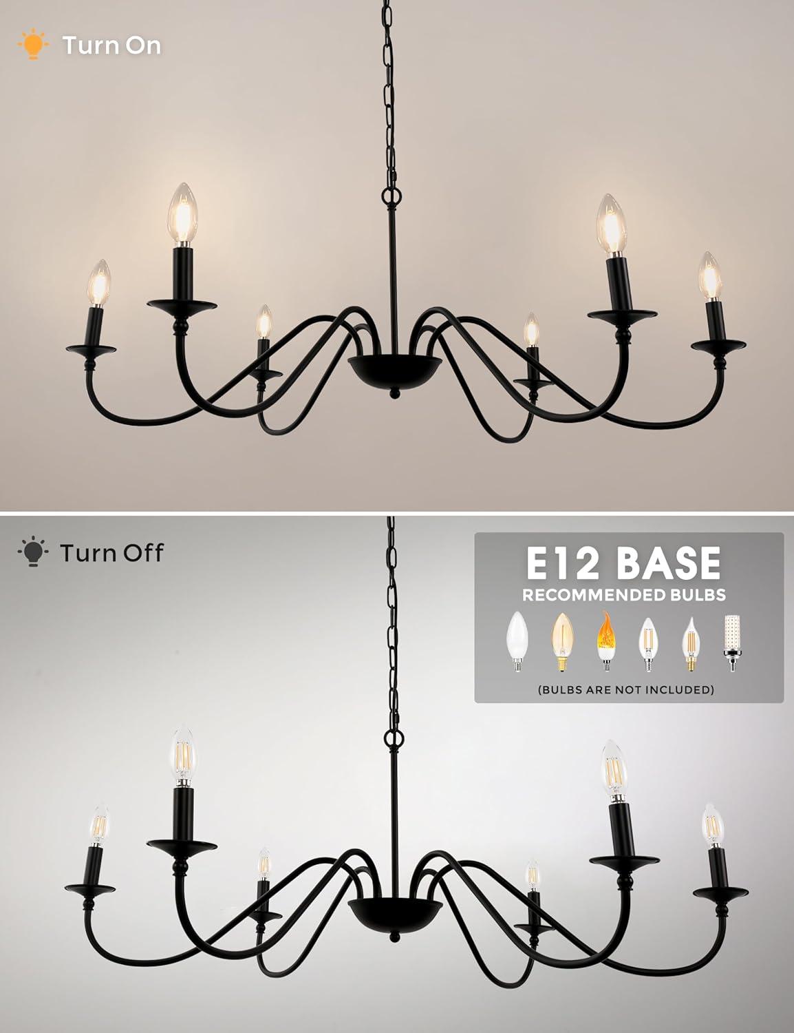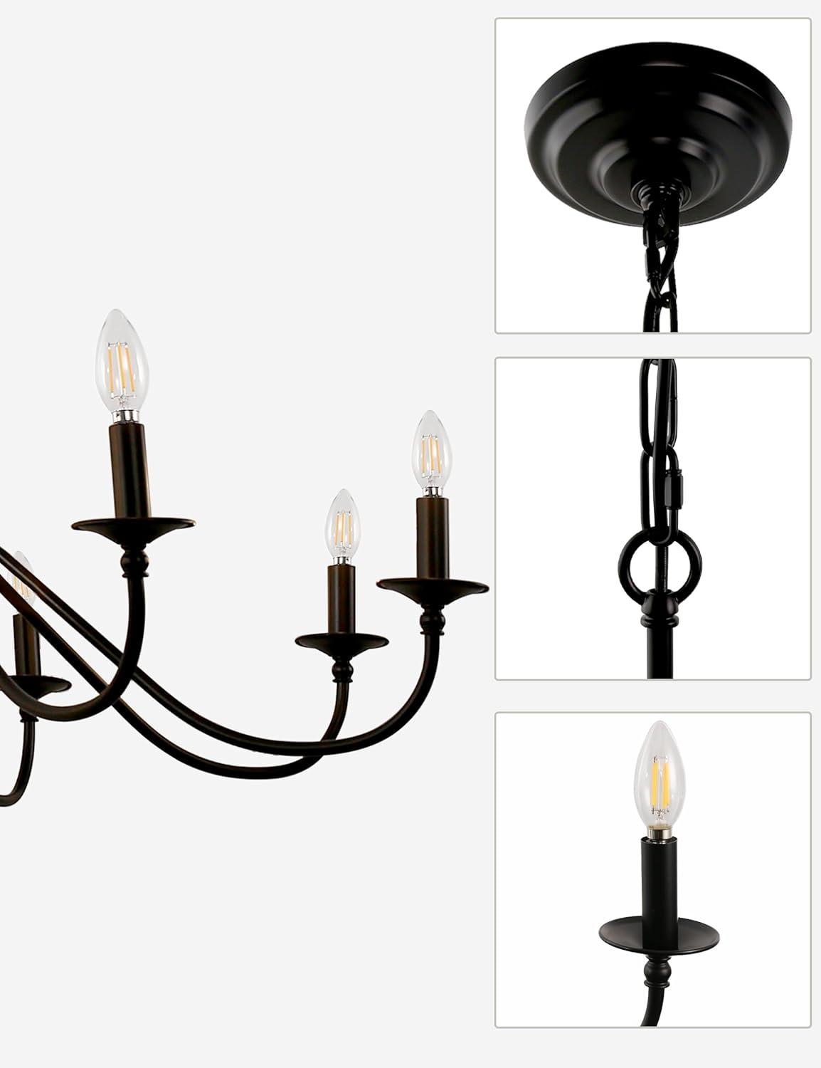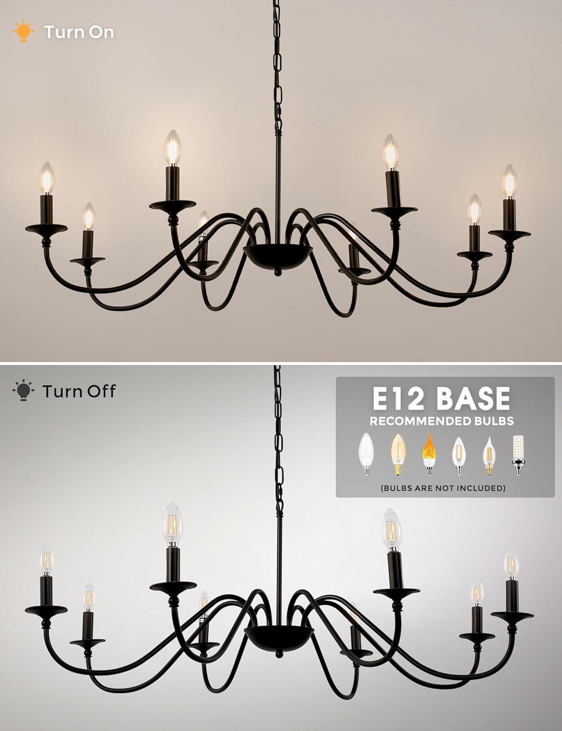 Energy-Efficient LED Lighting: Equipped with LED compatibility (E12), this chandelier is ideal as a candle chandelier for bedroom, offering bright, energy-saving illumination. Please note, bulbs are not included with the product