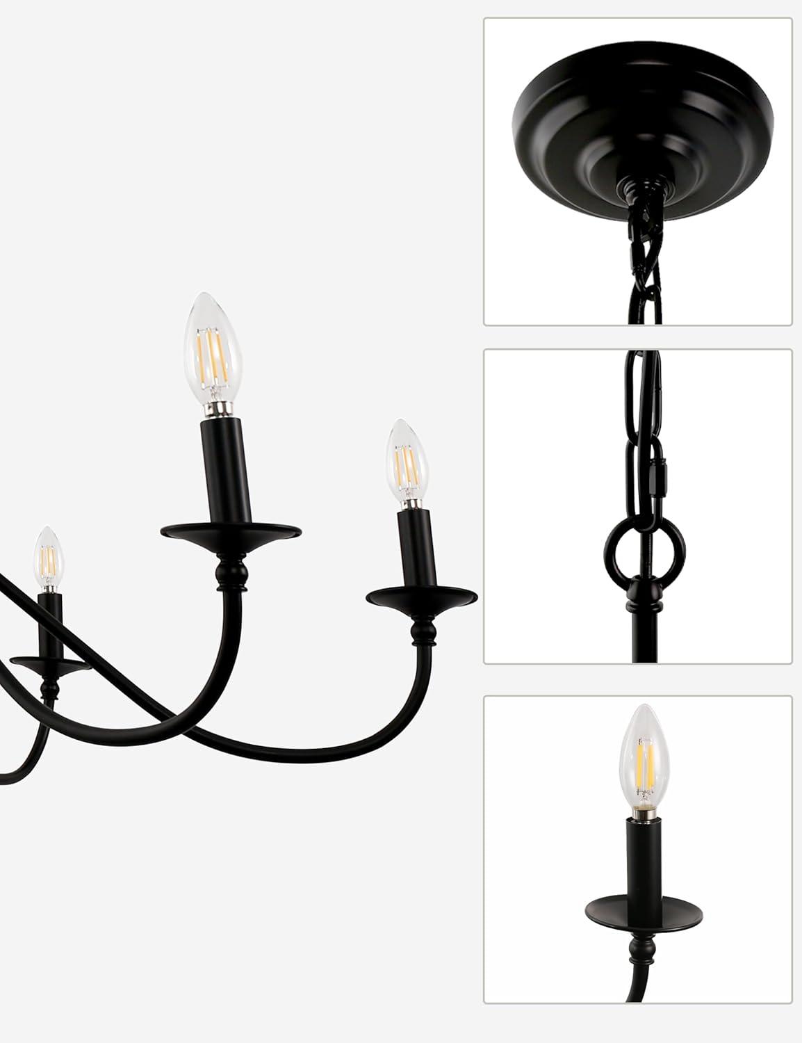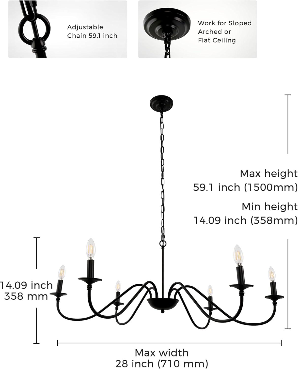 L LOHAS LED 6-Light Black Farmhouse Chandelier for Dining Room, 28″ Vintage Dining Room Light Fixtures Over Table, Adjustable Hanging Industrial Candle Chandelier for Bedroom Living Room Entryway E12(Black)