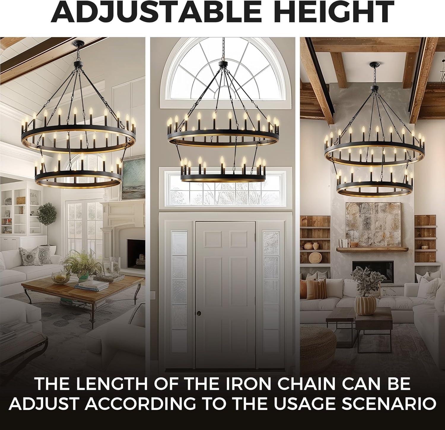 Adjustable Chain & Versatile Design-The chandelier comes with a 59” adjustable black metal chain, allowing you to customize the hanging height to suit your space. Its rustic industrial style makes it ideal for living rooms, bedrooms, dining areas, kitchens, entryways, hallways, offices, and more.