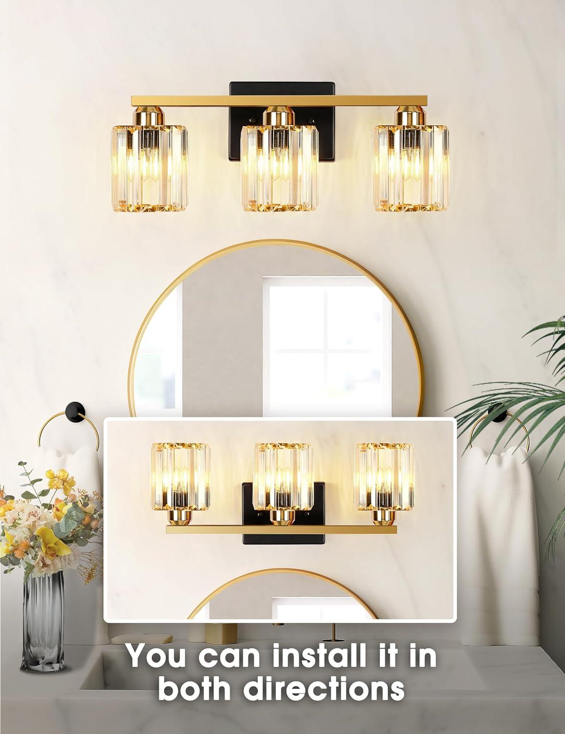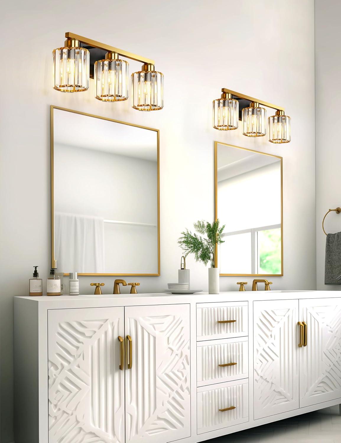 DISTINCTIVE ELEGANT DESIGN: Our 3-light bathroom vanity fixtures features the use of crystal-clear K9 Crystal. As light scatters through, the crystal lampshade emits captivating brilliance reminiscent of a diamond, portraying a contemporary luxurious essence and establishing a cozy and romantic ambiance.