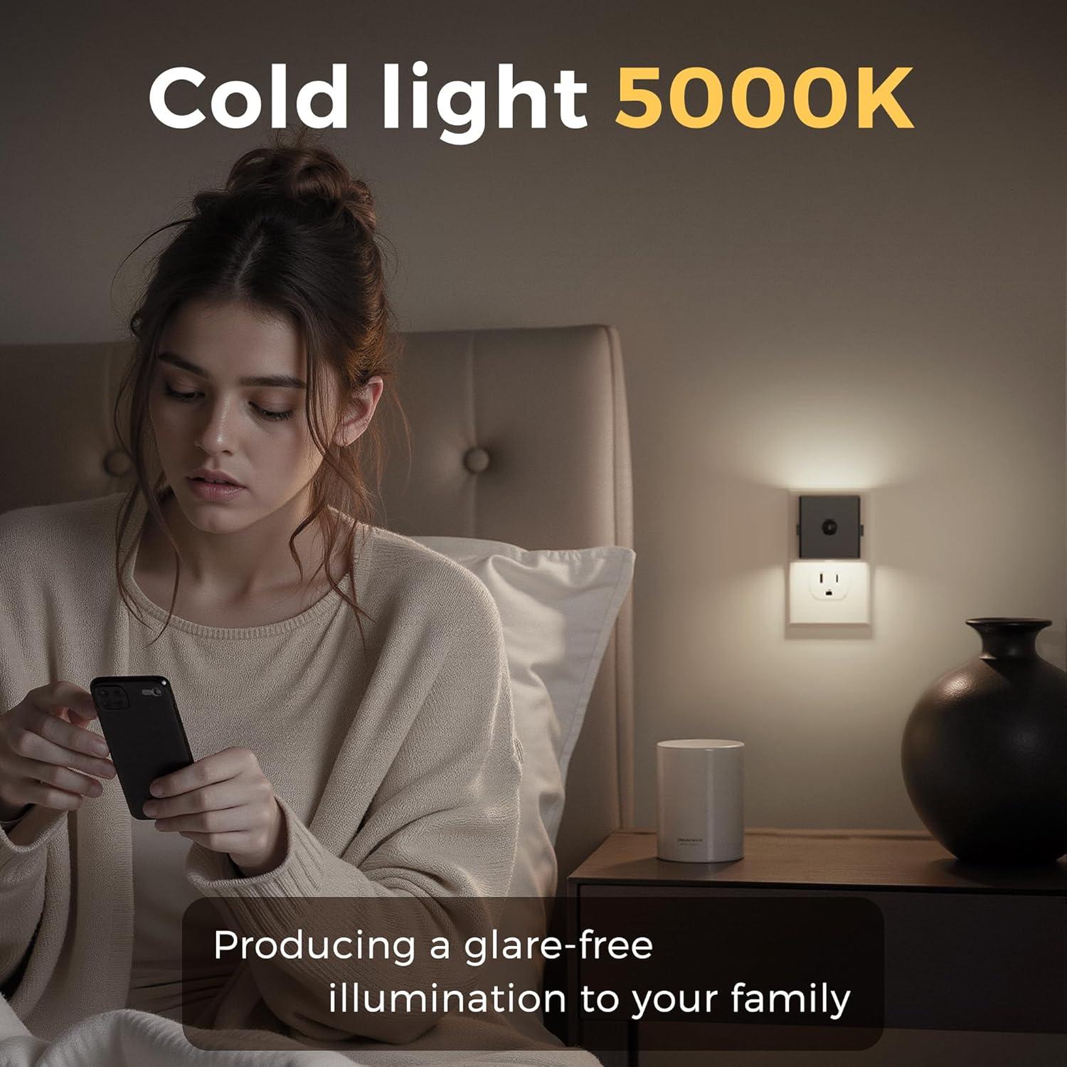 Safe & Energy Efficiency — This LED night light provide 5000K daylight white lighting and you can move around your house without turning on the main lights at night. Glare-free and not dazzling.The maximum power consumption of the nightlight is only 1w.Which helps save electricity bills and protect the environment.