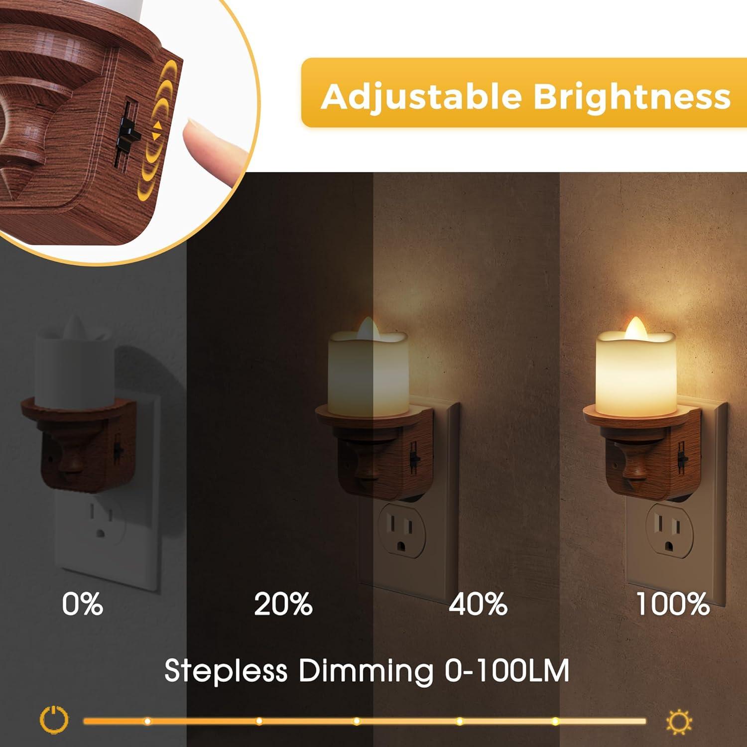 Dimmable Fake Candle Night Lights: The candle night light brightness button can be adjusted from 0-100LM, which can meet your different needs.