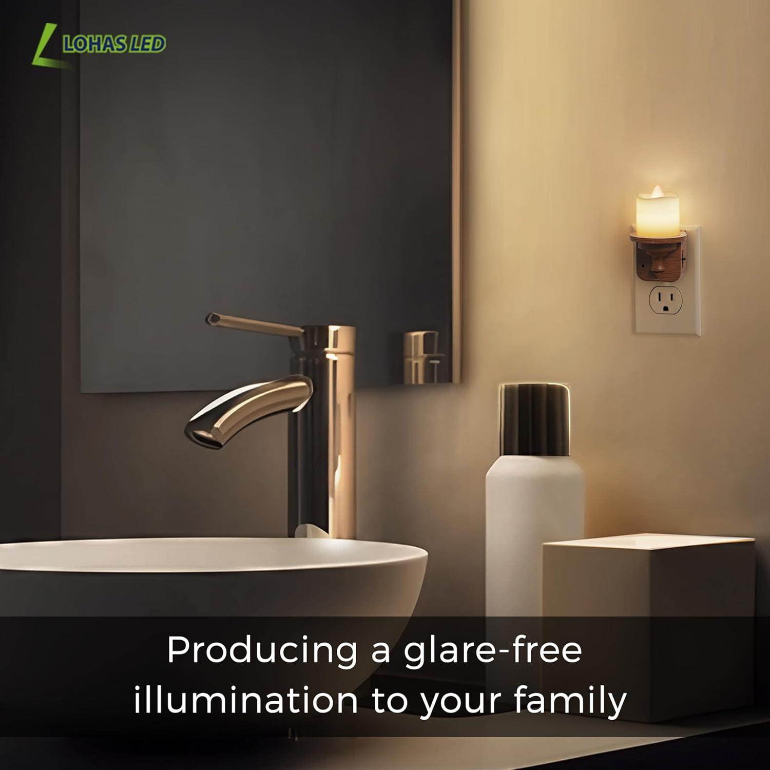 imageL LOHAS LED Night Light 2Pack Transparent Candle Night Lights Plug into Wall Amber Nightlight with Light Sensor Flameless Fake Candles 0100LM Dimmable Decorative Nightlights for Hallway BedroomWoodgrainSoft White