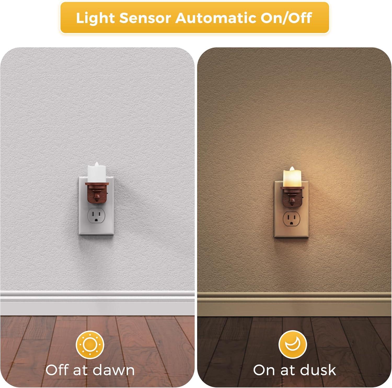 Auto ON/OFF: Dusk to dawn sensor candle nightlights can automatically turn the night light off during the day and on at night. Just be attention to keep a certain distance(over 1M) between two night lights, otherwise it may cause interference.