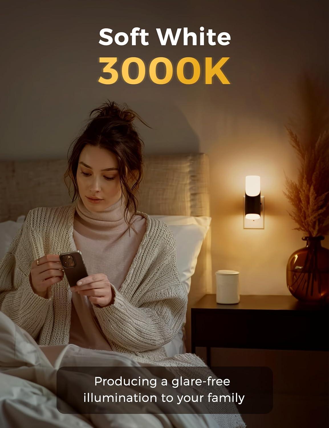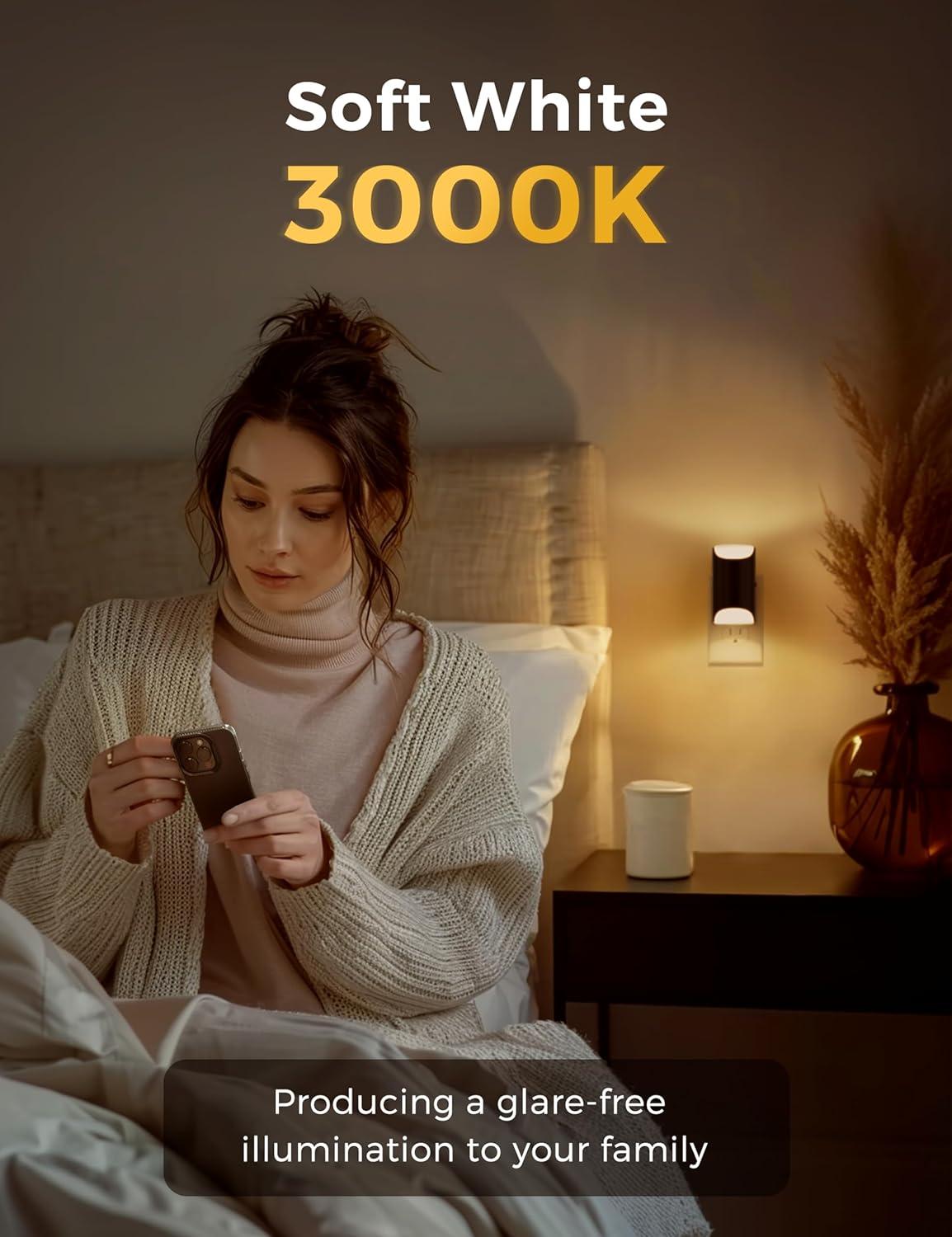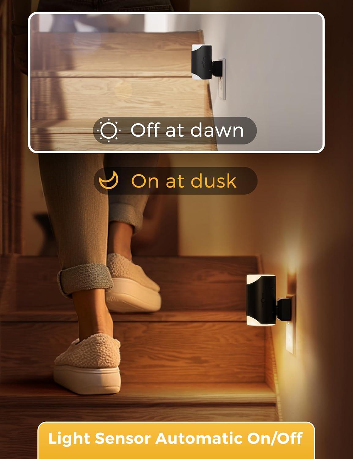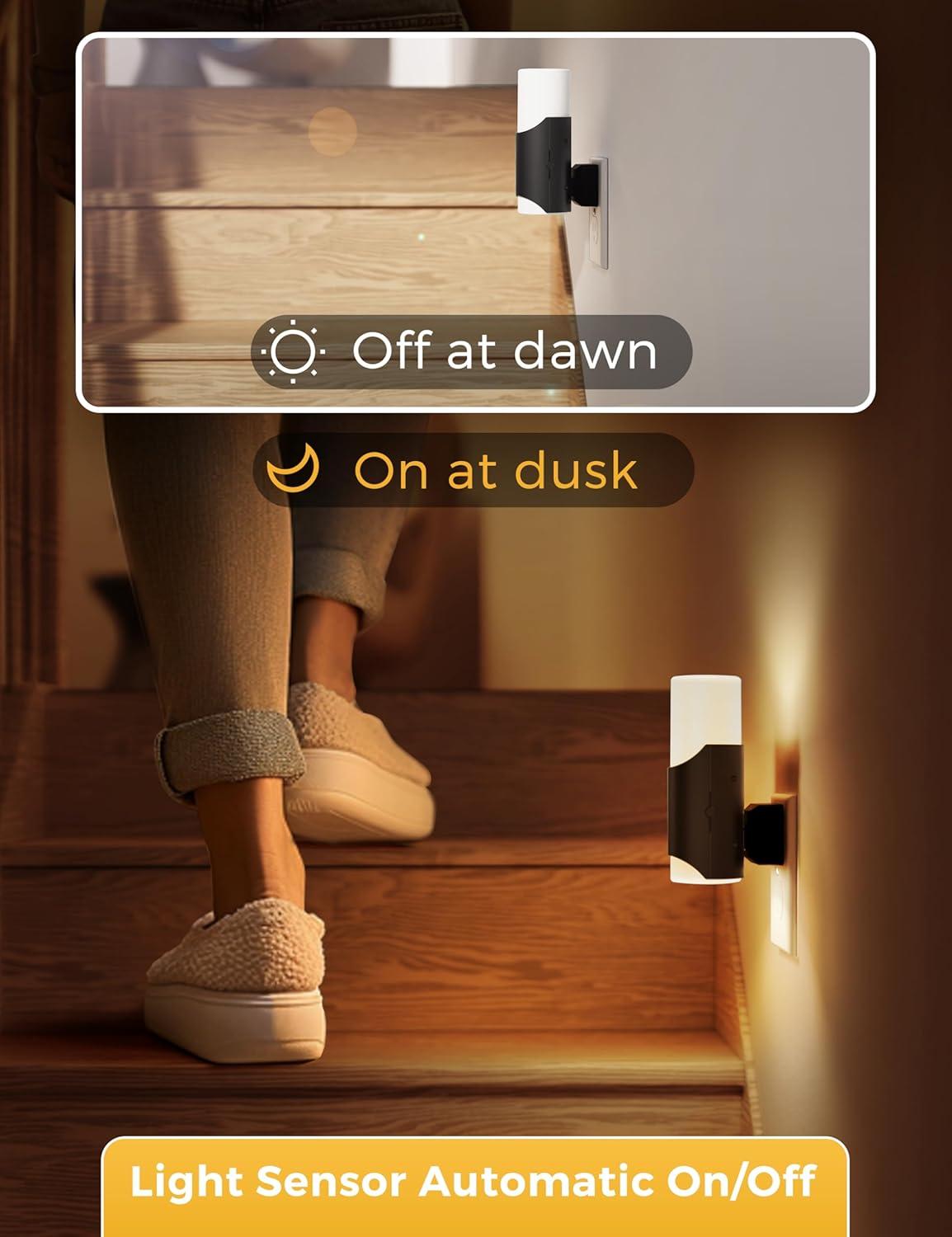 Auto ON/OFF: Dusk to dawn sensor nightlights can automatically turn the night light off during the day and on at night.
