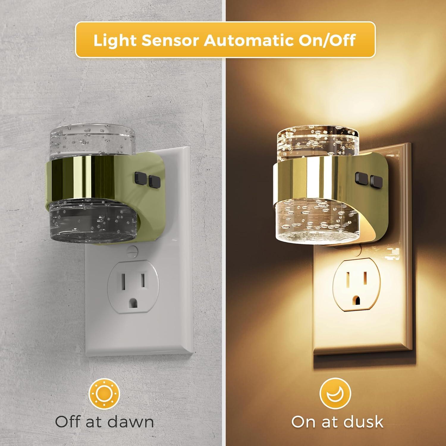 L LOHAS LED Night Light, RGB Bubble Night Lights Plug into Wall, 2 Pack 10-Color Change Night Light,Dimmable Nightlights with Dusk to Dawn Sensor for Rooms Bathroom Hallway(Gold Bubble-3CCT)
