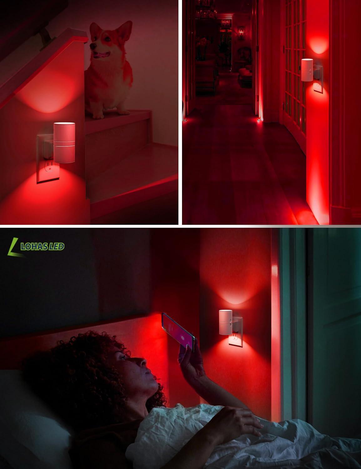 imageL LOHAS LED Night Light with Remote Night Lights Plug into Wall RGB Color Changing Nightlight with Light Sensor Nightlights for Kids Gifts Halloween Christmas Party Hallway Bedroom Kids Room1 PackRed