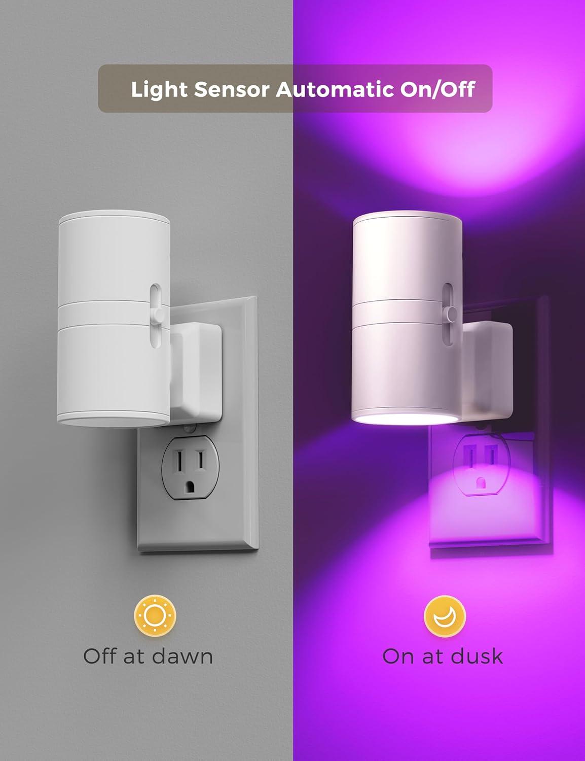 Light Sensor Mode & Constant-on Mode: With a dusk-to-dawn sensor, this night lights plug into wall can automatically turn on at dusk and off at dawn for energy-efficient lighting, while Constant-On Mode provides a steady glow for all the night. Multiple settings cater to your diverse needs.