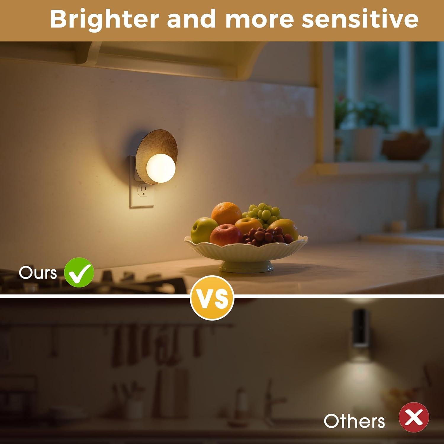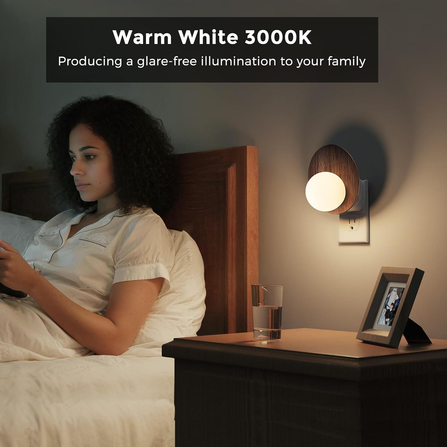 Dusk-to-Dawn Sensor — This LED night light built-in light sensor, intelligently activates at dusk and turns off at dawn—requiring no manual intervention. It provides a soft, guiding glow ideal for bathroom,hallway, bedroom, kitchen and nurseries, ensuring safety while conserving energy.