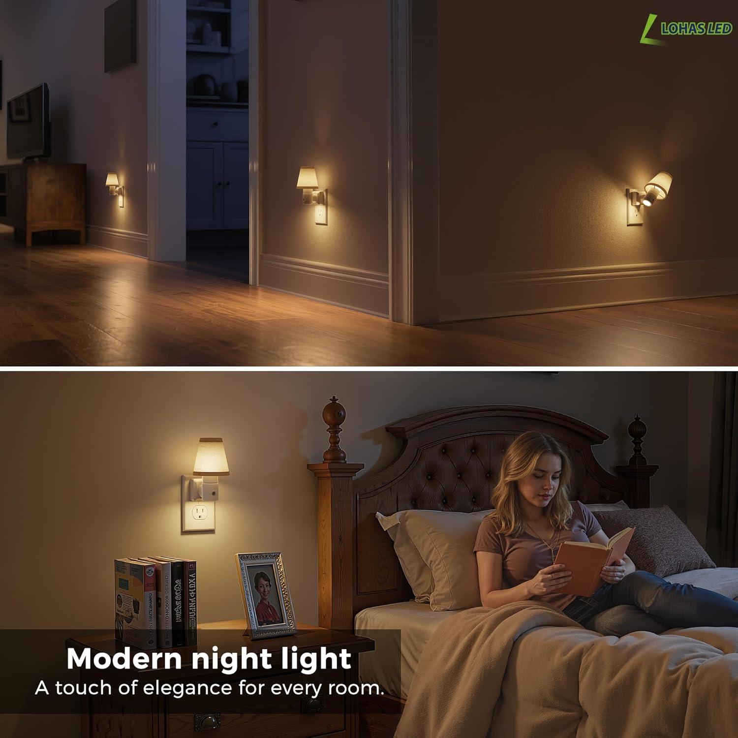 With soft warm lights, LOHAS night light plug in is suitable for decorating a corner of your home, such as corridors, stairs, bathrooms, kids' rooms, etc. In addition, they are also good as a gift or holiday decoration.