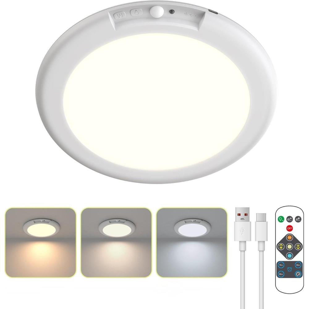 imageL LOHAS LED Rechargeable Motion Sensor Ceiling Light with Remote  Magnetic Wireless Ceiling Light Dimmable 3 Color Temperatures Battery Operated Closet Light for Closet Shower Stairs Shed Hallway3 Colour Temperatures