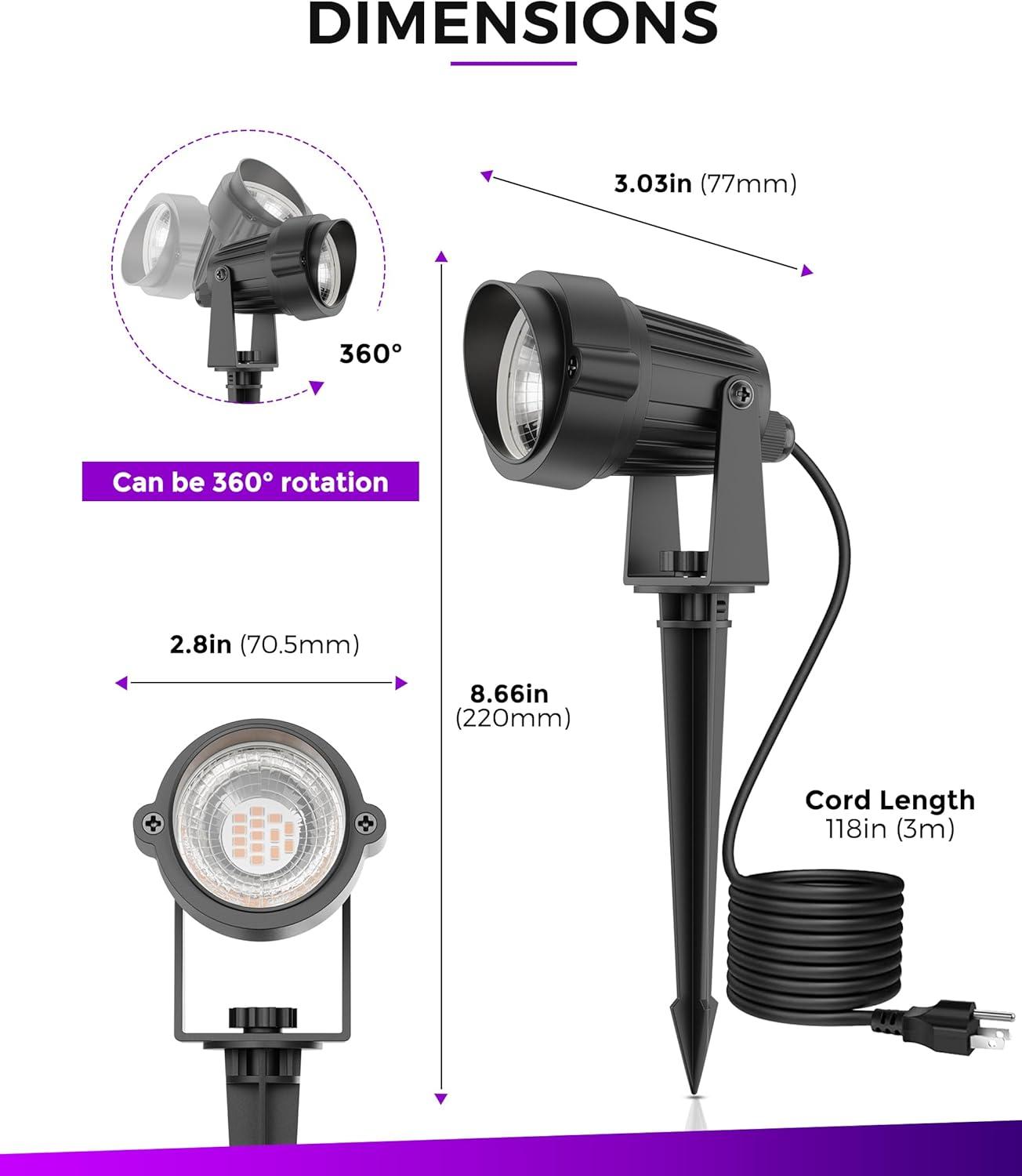 【Extended 9.84 FT Cord】Comes with a 3 m / 9.84 ft UL-listed power cord and US plug for safe and convenient use. The generous cord length of the landscape lighting offers greater flexibility in placement, helping you position the lights exactly where you need them without extra extension cords